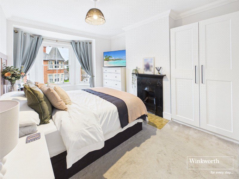 To the first floor are three/four bedrooms. The master is very generous in size and has a large bay window and feature fireplace. Bedroom two is another great sized double with a further feature fireplace, and views onto the rear. Room three is a single room and room four would make a great nursery/office. The family bathroom has a shower over the bath and white tiling.