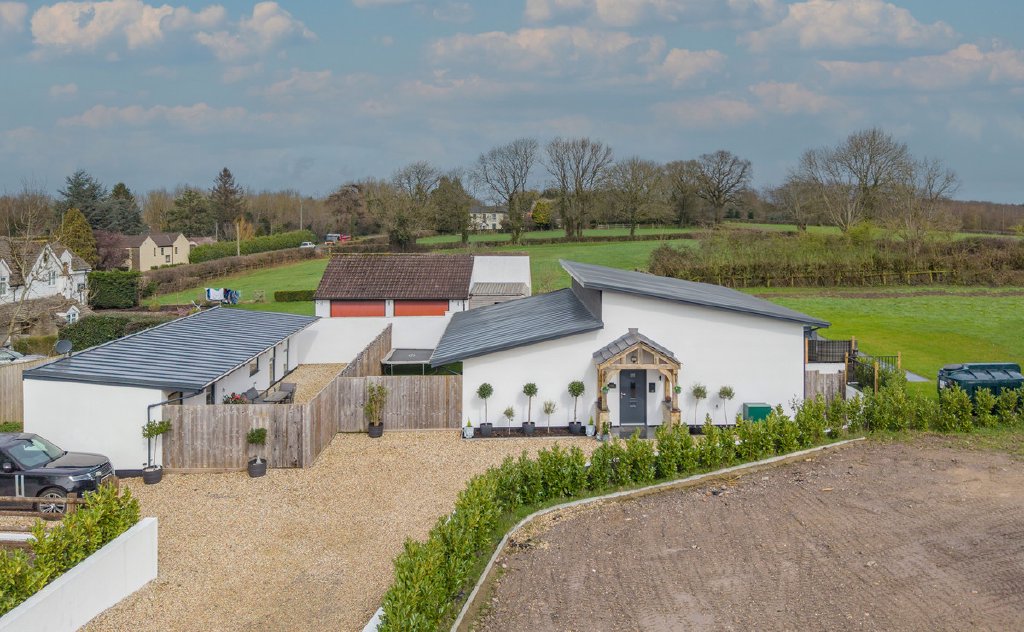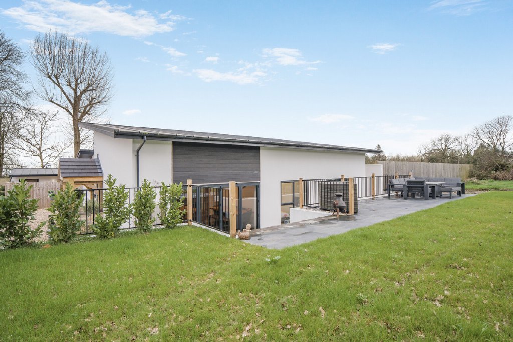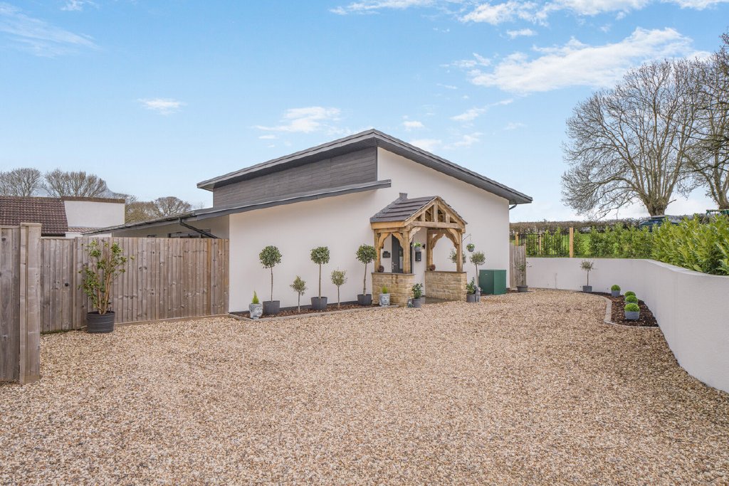 The main residence is a modern four-bedroom detached home designed for practical, contemporary living. The house is approached via an attractive oak-framed porch, which provides a welcoming entrance.