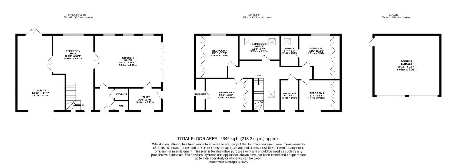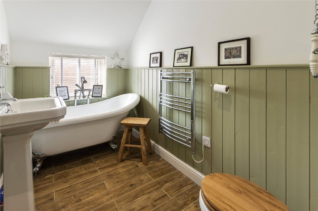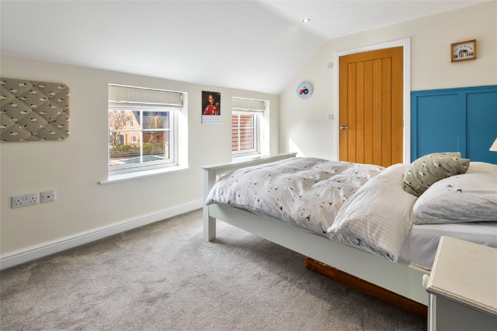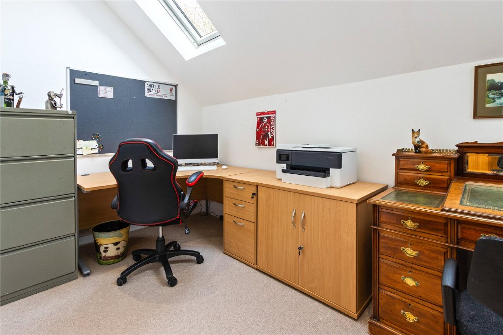 The principal bedroom and guest bedroom each benefit from stylish en-suite shower rooms, while four of the bedrooms are comfortable doubles and fitted with high-quality wardrobes. Bedroom five is currently arranged as a home office, giving flexibility for those needing workspace as well as bedroom accommodation.