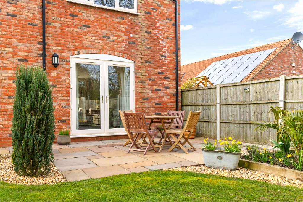 The garden sits predominantly to the south side of the property and has been thoughtfully arranged to combine enjoyment with ease of maintenance. Mainly laid to lawn, it is softened by carefully chosen areas of flowers and shrubs that add colour and detail without becoming high maintenance. Two patio areas have been positioned to enjoy different times of the day, one ideal for morning sunshine and the other enjoying a southerly aspect with sun through to sunset. There is also a beautifully kept vegetable garden, where meticulously laid beds are set out with gravel walkways, adding another layer of charm and practicality to the outside space.