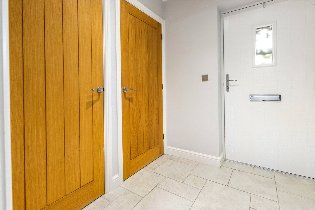 The covered entrance, framed by oak, immediately sets the tone for the style and quality found throughout the property. Stepping inside, the hallway is more practical than formal, almost working as a boot room, with a WC leading off and space that is ideal for the everyday rhythm of family life.