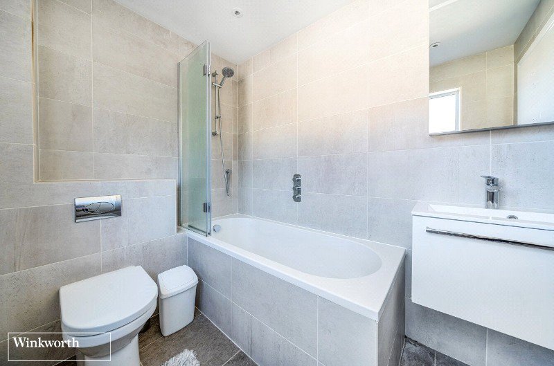 Heading upstairs, there are three bedrooms with the largest having fitted wardrobes (not shown on the floorplan). The bathroom has a modern white suite with contemporary wall and floor tiling.