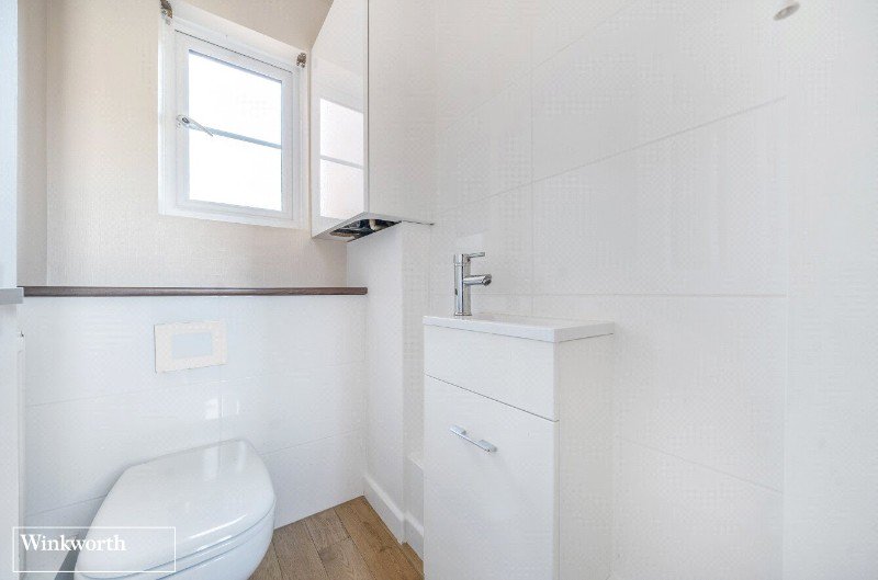 The ground floor has a very stylish kitchen/diner at the front which has been fitted with high gloss finish units complemented by wooden worksurfaces. Integrated appliances include a ceramic hob, oven and grill, dishwasher, washing machine and fridge-freezer. There is engineered oak flooring throughout the ground floor, enhancing the sense of space generated by the open plan design.