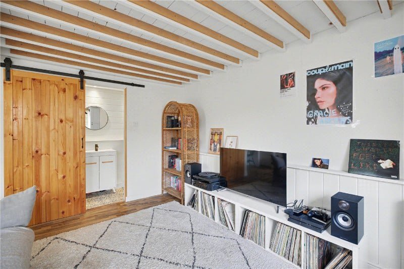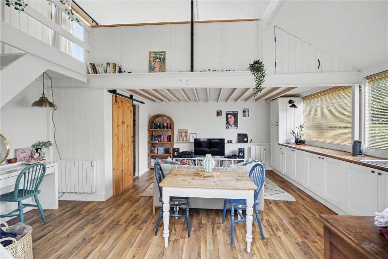 Measuring over 18ft, with its own shower room and mezzanine bedroom and living space this barn style studio is a must see! Whether used for guests, older children, working from home, it offers flexibility that is increasingly hard to find.