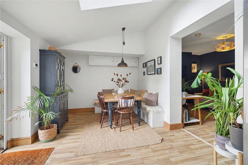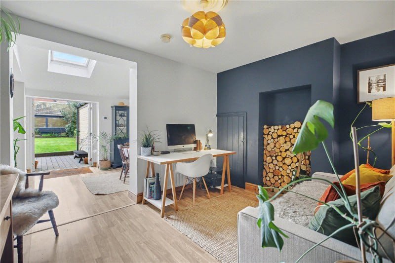 To the front, the sitting room provides a more traditional retreat, centred around a wood burner and offering a cosy, well-balanced space away from the main hub of the home.