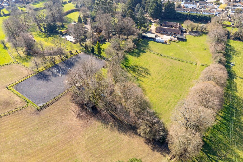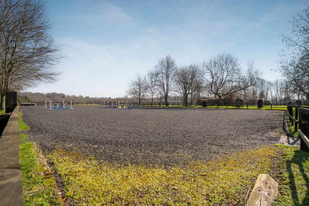 The land itself is a particular highlight, comprising a combination of well-maintained paddocks and open grazing, enclosed by post and rail fencing and bordered by mature trees and hedgerows. The setting offers both privacy and picturesque outlooks across the surrounding Chiltern countryside. A dedicated riding arena further enhances the equestrian appeal, providing year-round usability and making this an ideal proposition for those with serious equestrian interests.