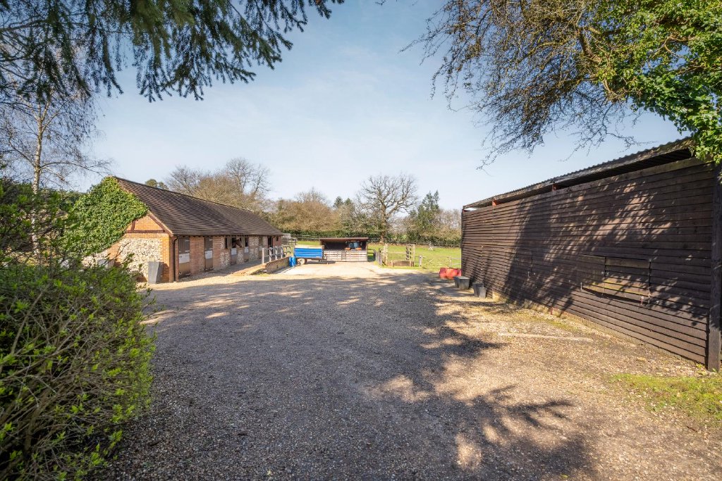 Positioned discreetly within the grounds yet easily accessible from the main driveway, the stable complex forms an impressive courtyard arrangement, offering a comprehensive range of loose boxes alongside a variety of ancillary outbuildings. These include substantial storage barns, tack rooms, feed areas and a large tractor store, creating a highly functional and well-considered equestrian environment suitable for both private and professional use.