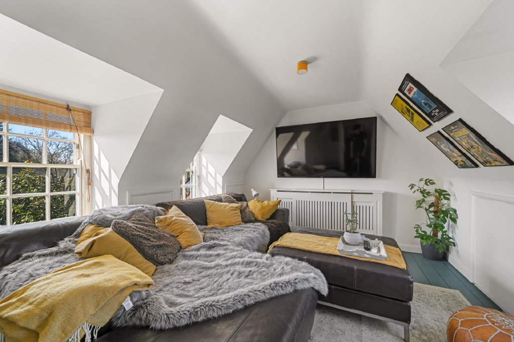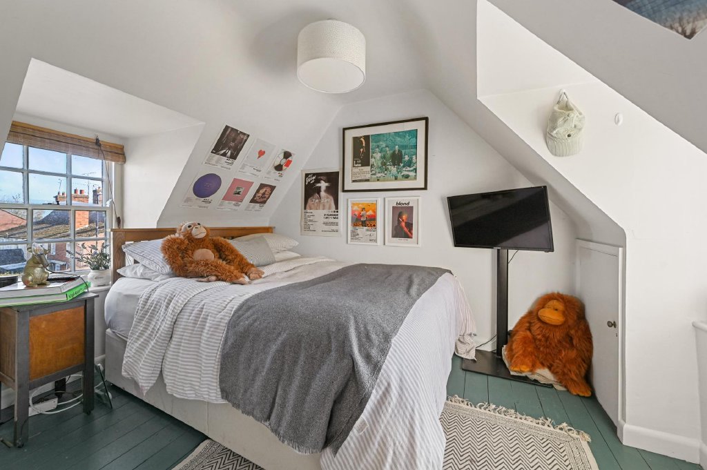 The first floor features two well proportioned bedrooms. The second bedroom benefits from its own ensuite, while the larger bedroom enjoys dual aspect windows making it a light and airy space with easy access to a sizeable family bathroom. From this level, a door opens directly onto the large roof terrace-a standout feature offering a wonderfully private spot to relax in the sunshine.