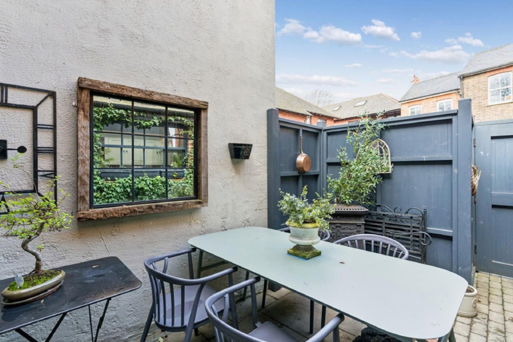 To the rear, a delightful courtyard garden offers direct access to private parking and a practical external storage cupboard.