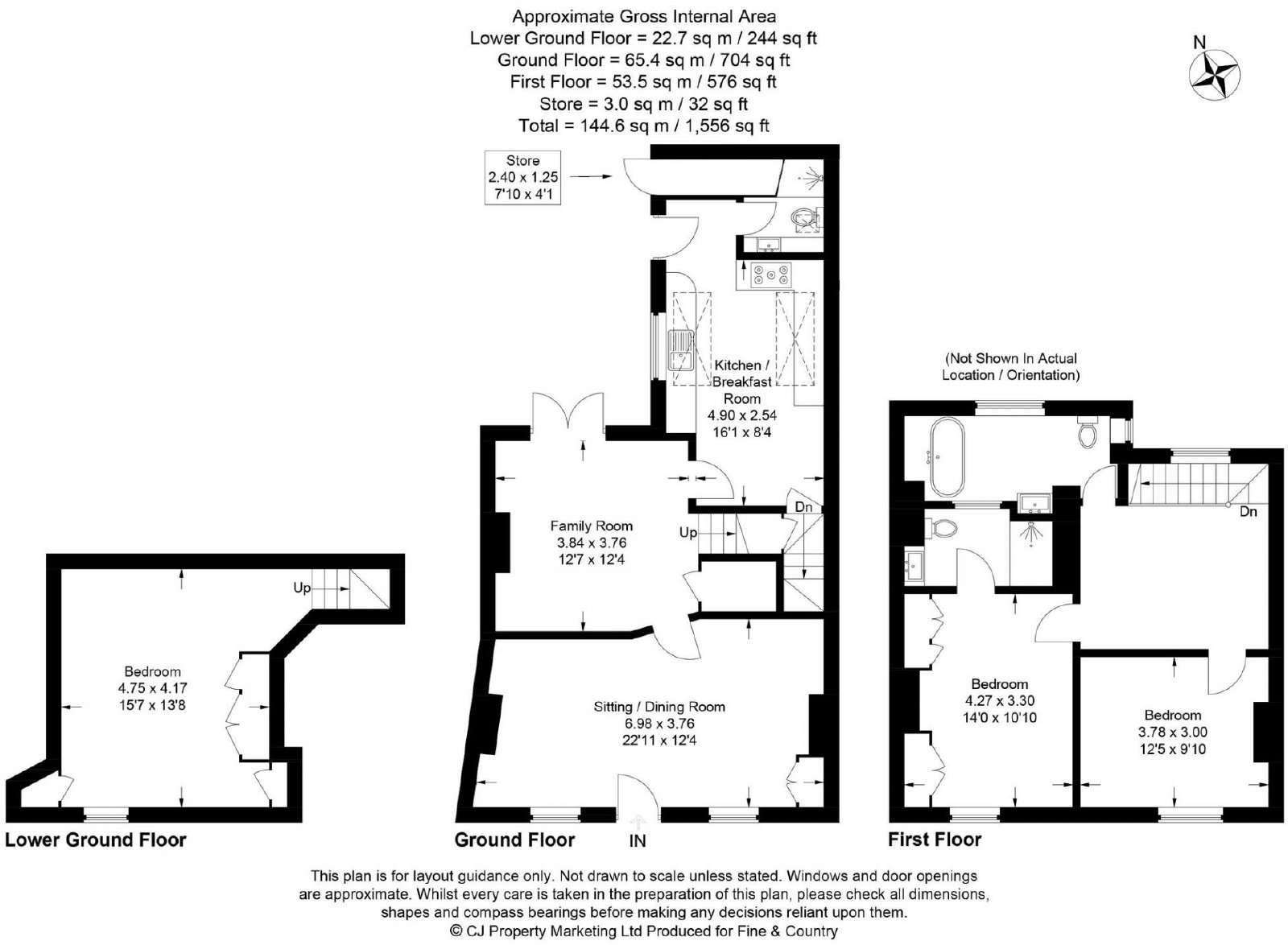 On the lower ground floor, a generously proportioned bedroom with a front-facing window provides an ideal guest suite or flexible living space.