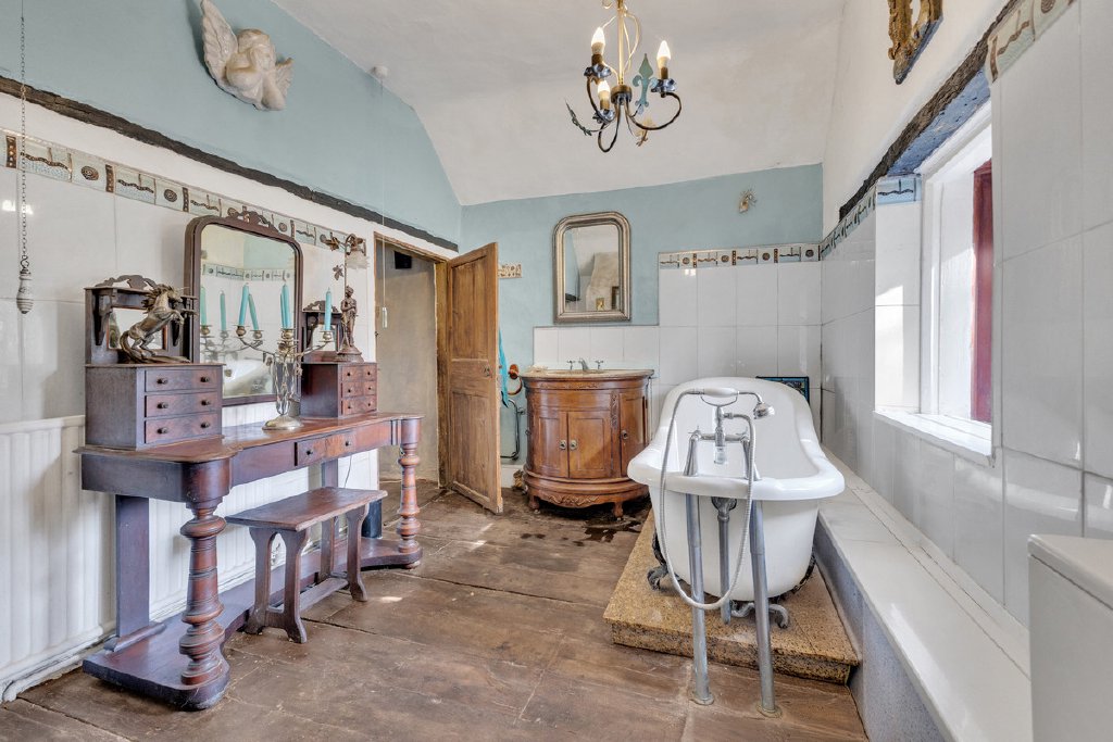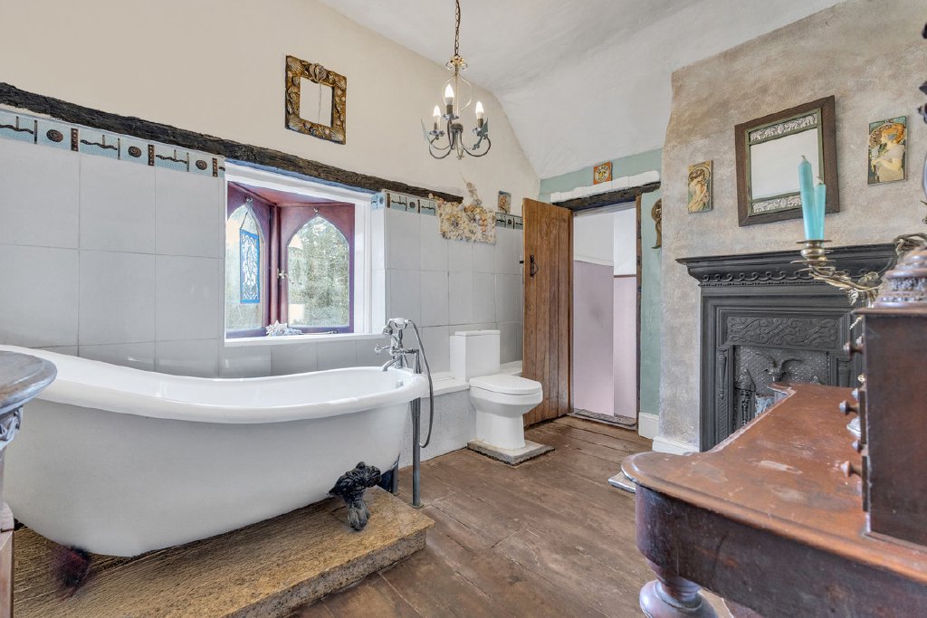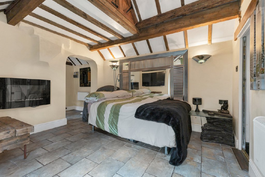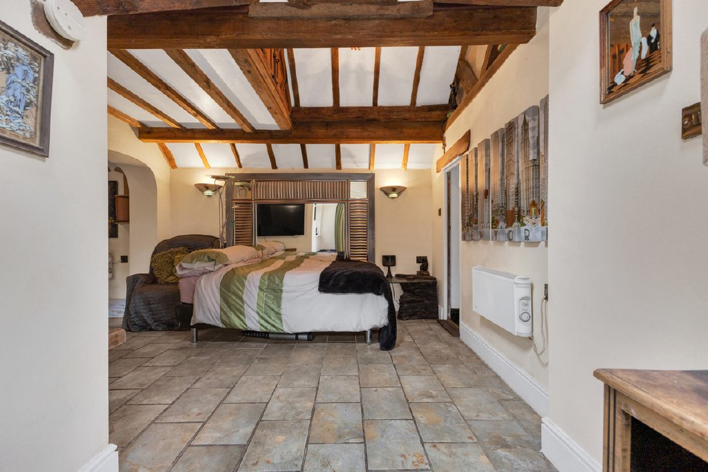 Upstairs, the home’s distinctive sense of character continues, with the property’s heritage evident in a wealth of charming period features including exposed timbers, attractive arched windows and original fireplaces.