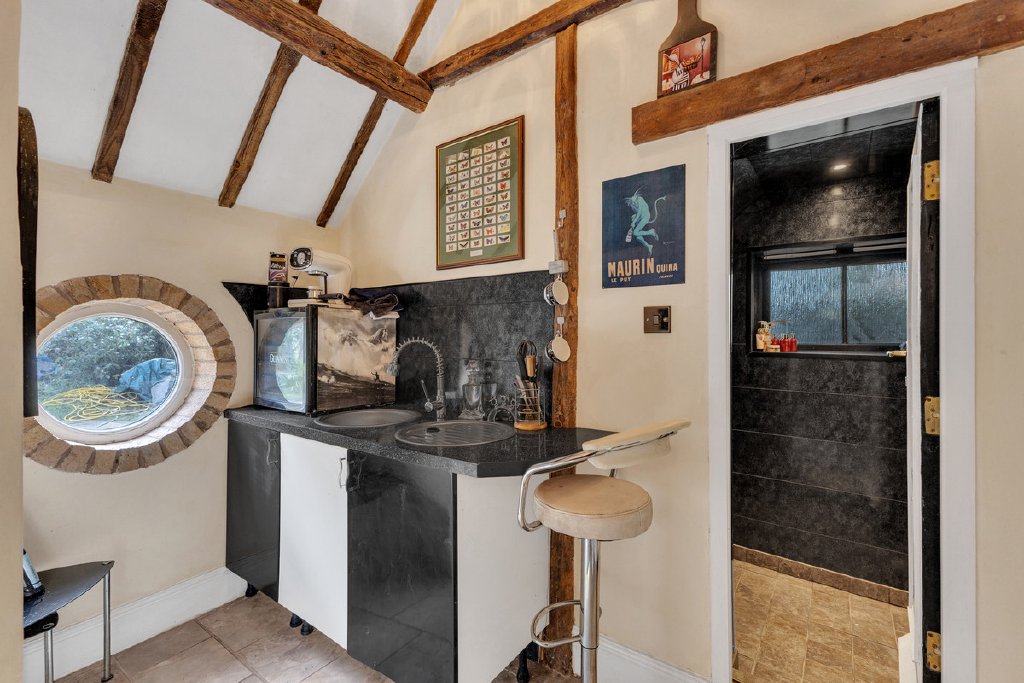 Within the gardens sits a hidden retreat, affectionately known by the current owners as “The Hobbit”, this self-contained one-bedroom annex provides a highly versatile space, complete with its own kitchenette, bedroom and bathroom facilities, along with an additional area currently used as a home gym, it offers excellent potential for guest accommodation, a studio or a home workspace.