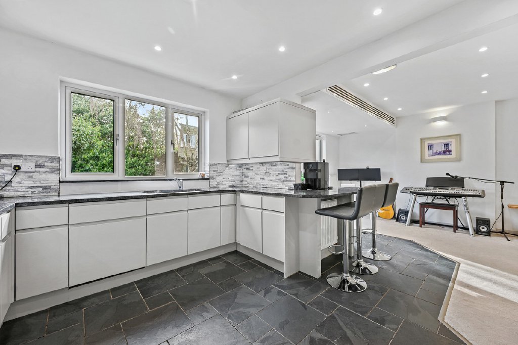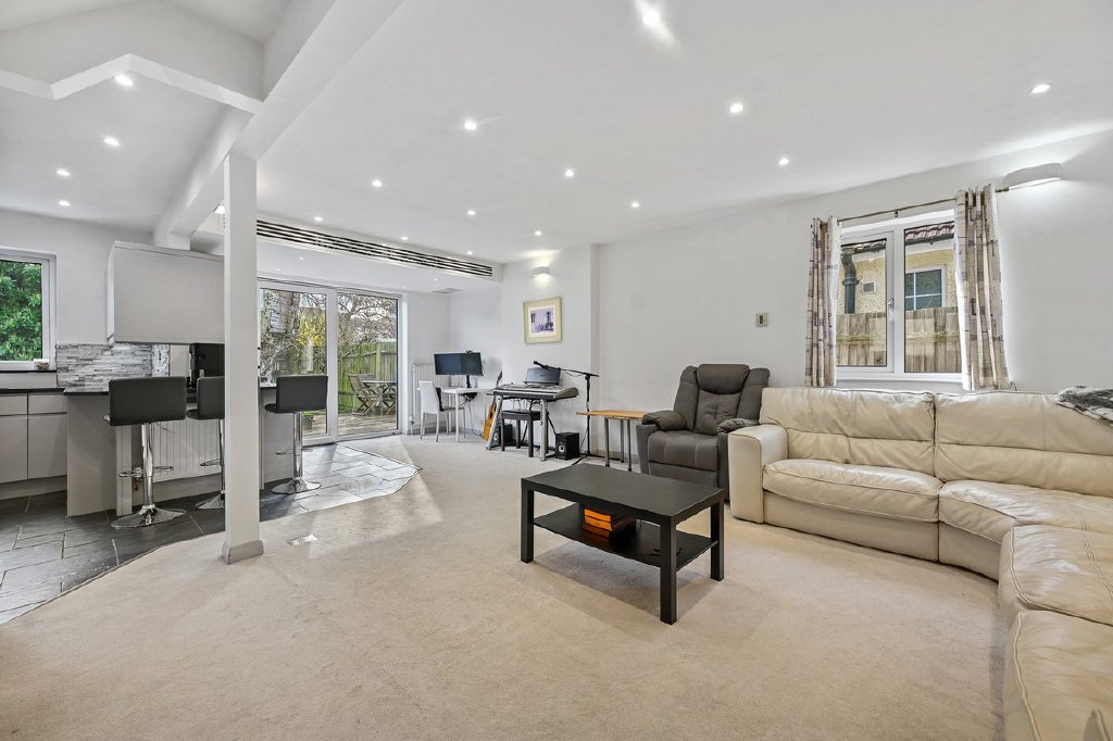 The ground floor is centred around an impressive open plan kitchen, dining and living space, designed for both everyday family life and entertaining. This area forms the heart of the home and is complemented by a bespoke fitted kitchen with quality integrated appliances, ample storage and direct access to the garden. Additional reception space and a ground floor bedroom with adjacent shower facilities provide further flexibility.
