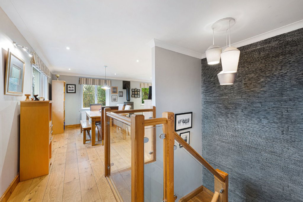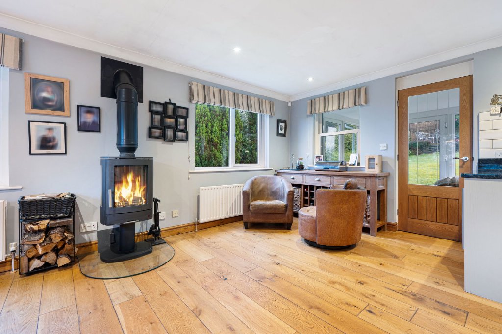 It is quite possibly the gardens that set this lovely home apart from all others – surrounding the house to all sides, they are an absolute delight. Well stocked and carefully tended they provide colour and interest throughout the seasons with a vibrant show of colour in the spring and summer months, especially when the Acer trees in the center of the garden are in full leaf and the extensive Rhododendron beds are in full bloom. There is also a small orchard with apple, pear and plum and cherry trees, and an adjacent 10’x8’ Eden greenhouse with water butts.