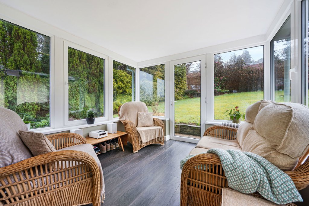 Commanding an elevated setting with superb views of Lake Windermere, this architect designed detached home was built in 1955 in a traditional Lakeland style. When the present owners were looking for a family home in the Lakes in 2013 they set out to create and transform the house into their dream home. With new joinery installed throughout the house in 2014, the property now offers well-proportioned rooms providing a double garage, an ensuite double bedroom with utility space and access to a spacious undercroft. On the first floor there is a lounge with large contemporary balcony off, a dining kitchen with conservatory, a further three bedrooms and two bathrooms. Primarily Ghyllside had the one thing that all Lake District residents crave – a view of Lake Windermere, and here it is even better, as different parts of the same room capture a different angle of this super vista! To see the masts on the yachts gently bob in the breeze on their moorings or sail elegantly past is really rather wonderful, especially if you happen to be sat on the balcony or at the top of the garden at the time. The ribbon of low lying mist on an autumnal morning is a lovely sight to behold with your morning brew as you contemplate the day ahead. Light, bright and contemporary was just what the owners wanted and is undoubtedly what this home is.
