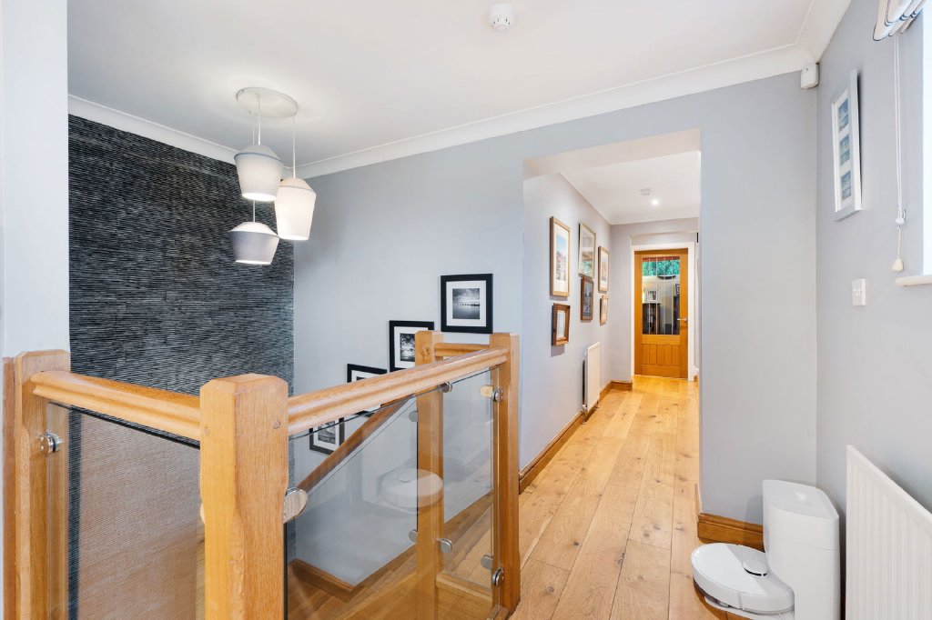 Internally the house has been given a uniform look with fabulous joinery fitted (bespoke oak staircase, room and cupboard oak doors, skirting boards and architraves) fitted throughout, plus a great use of natural materials with the inclusion of a feature Brazillian slate wall as you head up the staircase plus, rustic oak and bamboo European flooring in most of the rooms. Additionally, modern kitchen and bathroom fittings were installed. Outside, the gardens have been landscaped to provide cleverly positioned seating areas and easy to maintain planting.