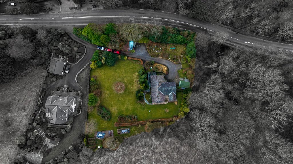 Pull in off Newby Bridge Road and the entrance is shared with the adjoining house, High Ghyll. Continue up to Ghyllside’s long private drive which has ample parking space for 5+ cars and leads to the attached double garage and another detached single garage. Both garages have power and light with internal shelving and storage. The double garage also benefits from a large storage area adjoining the undercroft, an internal door leading to the main accommodation, and an electric up and over door.