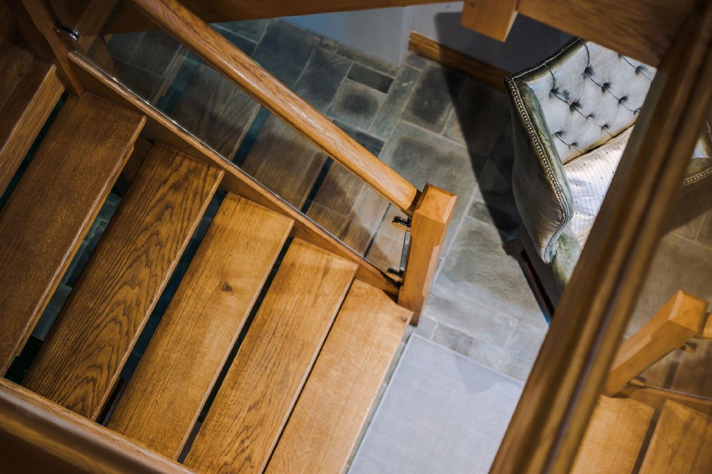 Moving up to the first floor via the bespoke European rustic oak and glass staircase you approach the heart of the home, the open plan dining kitchen. The kitchen includes contemporary wall and base units with Granite worktops, rustic oak European flooring, Stoves oven and grill, Stoves induction hob with extractor over and stainless steel sink with detachable hose. Adjacent to the kitchen is the living and dining area enjoying a convenient ACR wood burning stove, and is the perfect place for a morning coffee or chilled sundowner as you watch the sun set over Claife Heights on the far side of the lake. This open plan area also leads to a bright and airy conservatory with additional seating and access to the rear garden.