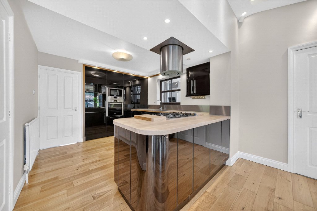 At the heart of the home is a spacious wrap-around kitchen, overlooking the private garden and providing a bright and highly functional environment for everyday living and dining.