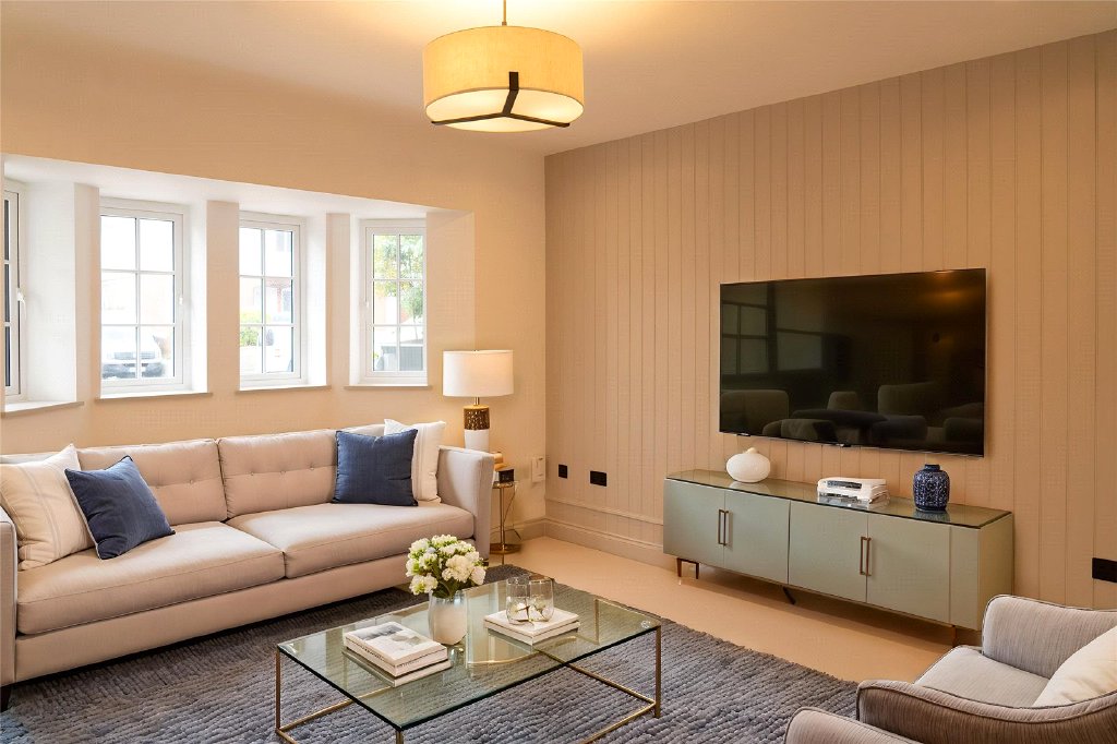 Formal lounge areas feature bay windows to the front, wood panel detail, and provision for wall mounted TV's, making the perfect place to relax.