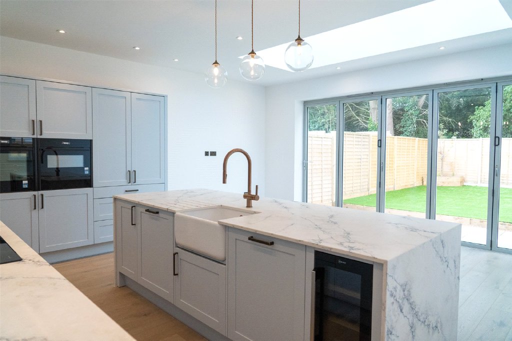 Superbly appointed kitchen areas offer an extensive range of storage and a large Island with space for multiple stools. They boast a full range of integrated appliances to include double ovens with a heated draw, induction hobs, dishwashers, and chilled wine cabinets. An adjacent utility area then offering space for a washing machine and offering further storage.