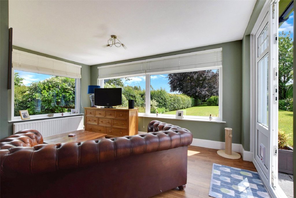 From the dining room, a doorway leads to the sun lounge—a beautifully light, triple-aspect room with French doors opening out onto the rear patio and garden. Whether used for morning coffee or evening relaxation, this serene room is a true sanctuary.