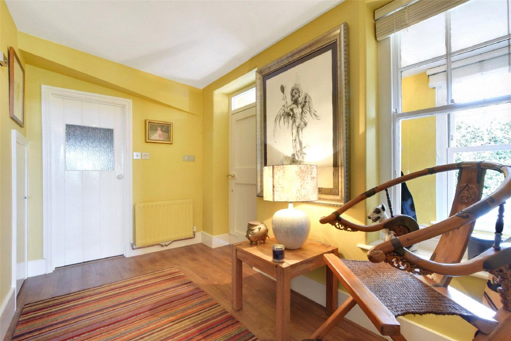 To the left, you’ll find a charming snug, complete with a Fireline FX5 multi-fuel stove (installed in 2014), creating a warm and intimate atmosphere. Moving through the inner hallway, a staircase rises to the first floor, while access to the principal reception rooms is also provided.