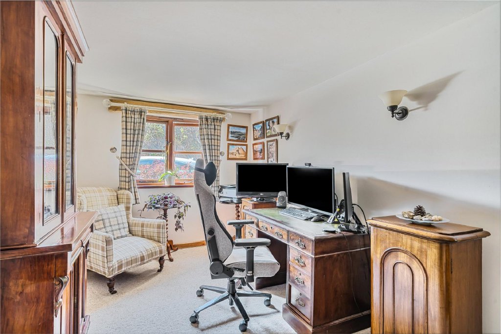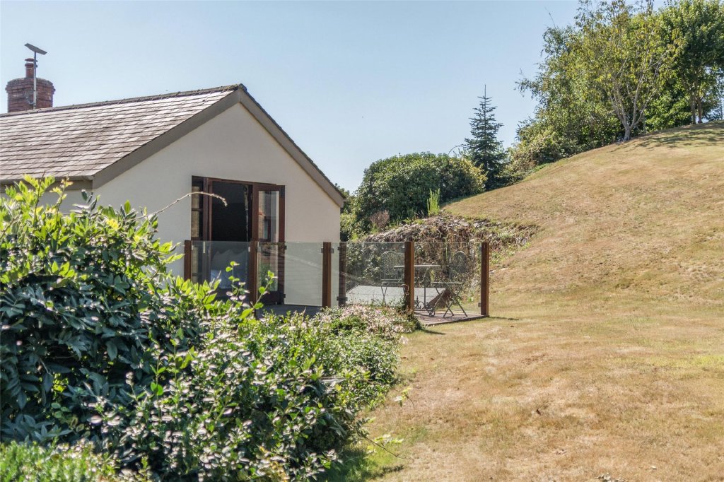 Outside, the property is approached via a gated driveway with ample parking, alongside additional parking at the rear. The landscaped gardens have been carefully designed to create distinct areas for relaxation and enjoyment, including a large patio, a substantial summer house, and gently sloping lawns extending across the plot. From the upper sections, there are far-reaching countryside views, enhancing the sense of peace and privacy.