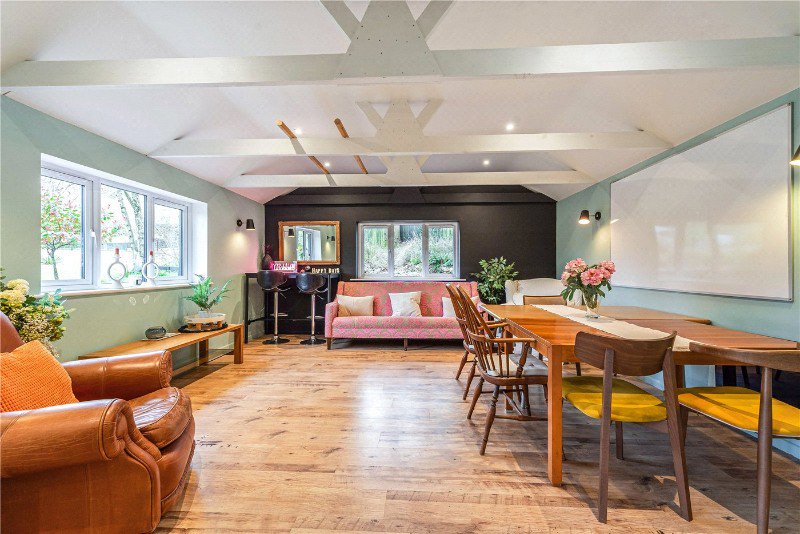 Externally, the property truly excels. The grounds are a particular feature, predominantly laid to lawn and interspersed with mature trees, planting and well-stocked borders, creating a high degree of privacy and a picturesque setting. A superb terrace area provides the perfect space for outdoor dining and entertaining, while the swimming pool and associated pool house facilities add a luxurious touch for summer enjoyment. In addition to the main house, there is an extensive range of outbuildings including a substantial barn/workshop, a stylish home studio complete with kitchen area and WC, and finally, a substantial utility room and garage space. These versatile structures offer significant potential for a variety of uses, whether for home working, hobbies, or potential guest accommodation (subject to the necessary consents).