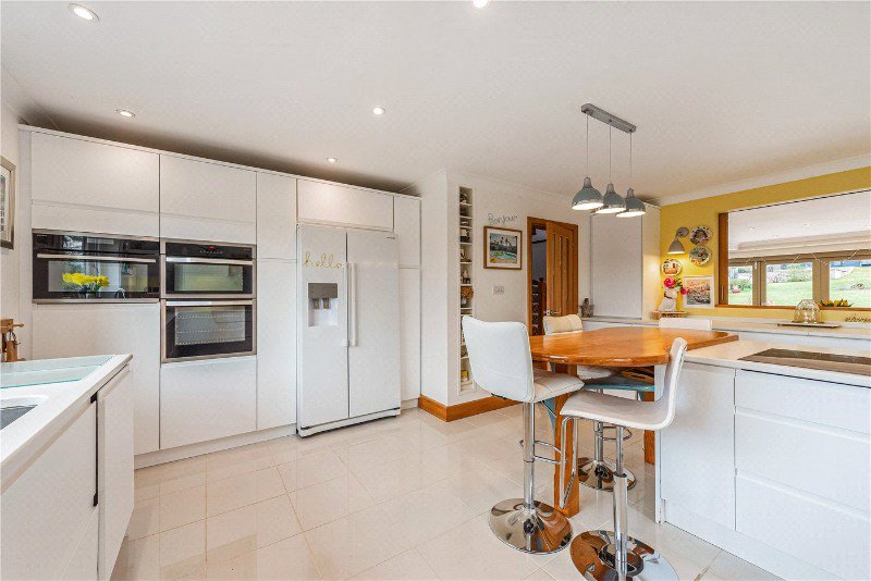 The ground floor is thoughtfully arranged, centred around a welcoming entrance hall which provides access to a selection of well-proportioned reception rooms. A bright and airy sitting/dining room forms the heart of the home, offering a superb space for both everyday living and entertaining, with doors opening straight onto the garden. The adjoining garden room/snug provides a more intimate retreat, enjoying equally delightful views across the grounds. To the front of the property there is a well-appointed and practical kitchen/breakfast room with ample space for informal dining, while a separate study offers an ideal work-from-home environment. A generous ground floor bedroom with its own en suite, and a separate downstairs WC further enhance the flexibility of the downstairs accommodation.