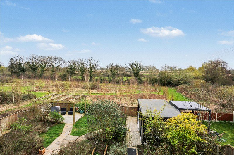 To the rear, the property truly comes into its own. The garden has been thoughtfully arranged to create distinct areas for relaxing and entertaining, including a raised decking area with pergola, perfect for summer evenings. Beyond, uninterrupted field views stretch across open countryside, delivering a stunning and ever-changing natural backdrop that brings a real sense of calm and space rarely found.