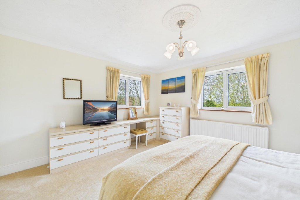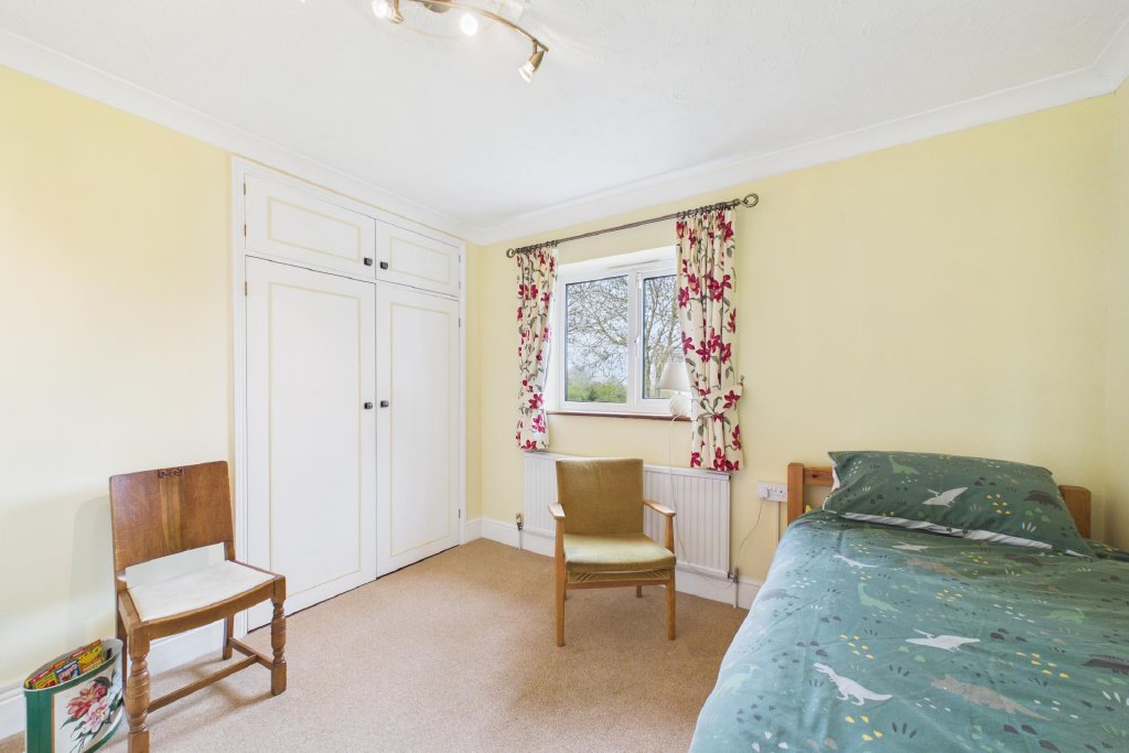 BEDROOM TWO 15' 11" x 10' 8" (4.87m x 3.26m) Dual-aspect with views over the pond and garden; including built-in wardrobe cupboards.
