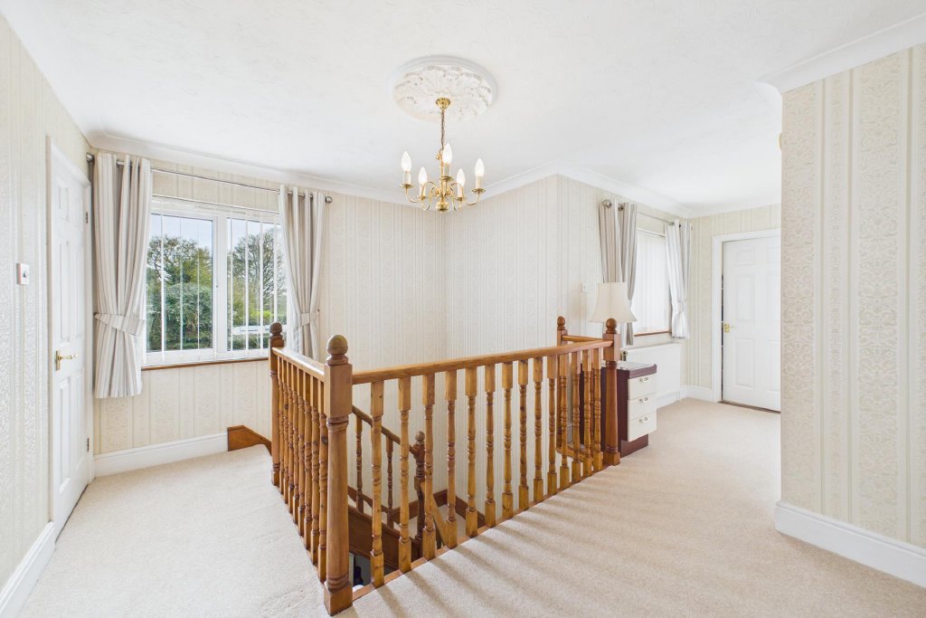RECEPTION HALL With staircase rising to a galleried landing; under stairs storage cupboard.