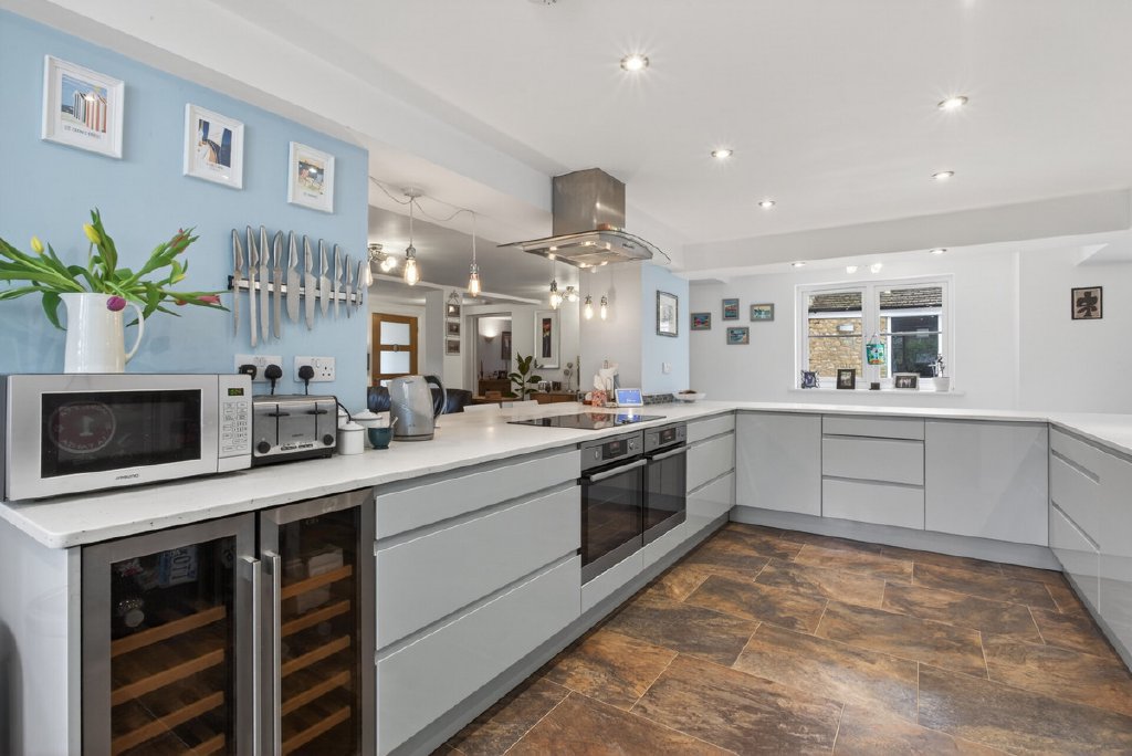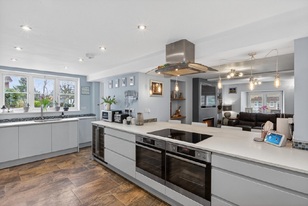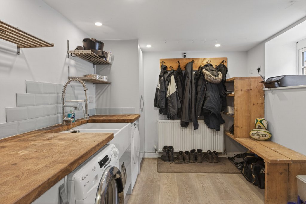 The main entrance is in the oldest part of the cottage; you are greeted by a lobby area which leads into the semi open hallway. On the right is the first of four reception rooms, it's a superb sitting room ideal for entertaining and opens into the kitchen, it has an impressive contemporary style wood burner and a tiled floor, this room is lovely and bright with a window to the front overlooking the garden. To the right of the hallway is a lovely sitting room, it is a delightful room with a period inglenook fireplace with wood burner and views to the rear over the garden. Adjacent is a spacious dining room, it's a great size room ideal for family dining. To the rear is a large boot/utility room with access to the garden and plenty of space for coats and boots etc, it has a fitted utility area and wood storage. The kitchen is a lovely bright space with windows to both sides and a door opening onto the large sun terrace. It is fitted with a range of quality, modern style units with quartz work surfaces, with an integrated dishwasher, two ovens, induction hob, extractor hood and a wine cooler with space for an American fridge/freezer. The kitchen has a side lobby with further storage and access to the driveway.