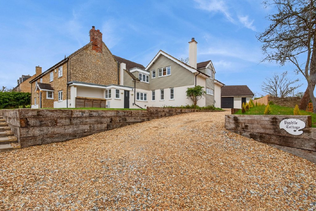 Pyghtle Cottage a very appealing and substantial detached stone-built period house, situated in this sought after and rarely available location in Silverstone. The property has been thoughtfully extended and modernised over the years and is now a successful blend of both contemporary and period features, it also has the flexibility of a guest annex with gym and a luxury shower room with sauna. The west facing gardens extend to approximately 0.33 acre and feature a superb sun terrace with water feature that opens onto a large lawn, there is also a detached double garage with ample parking on the long sweeping gravel driveway. Pyghtle Cottage is accessed via a long gravel which leads to the side of the house, there is parking for at least 6 cars and access to the detached double garage.
