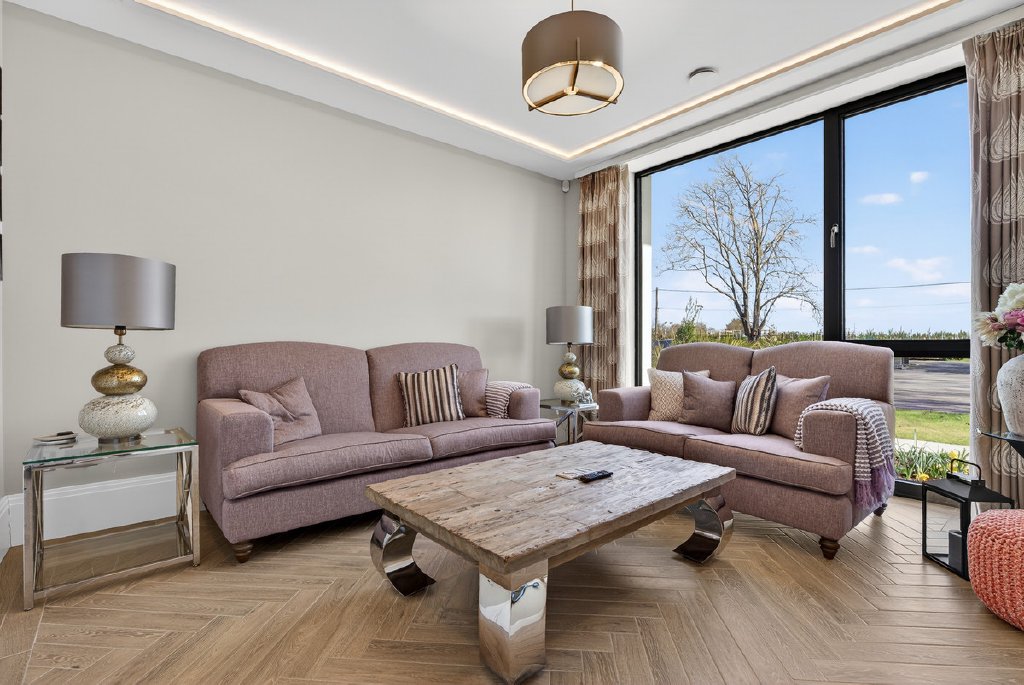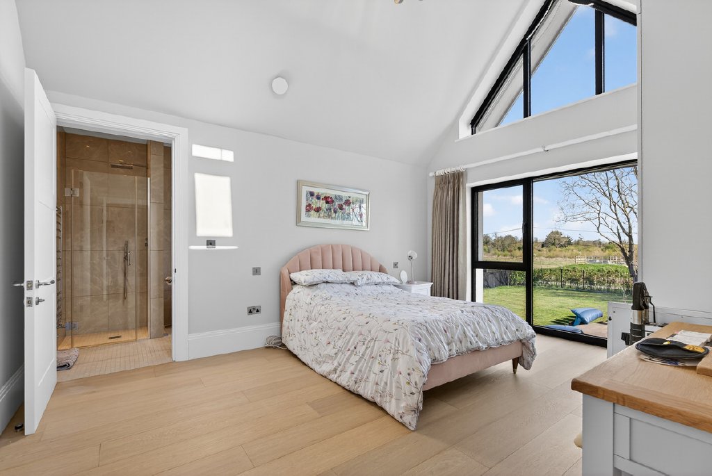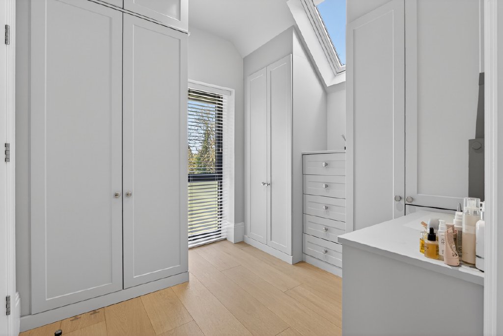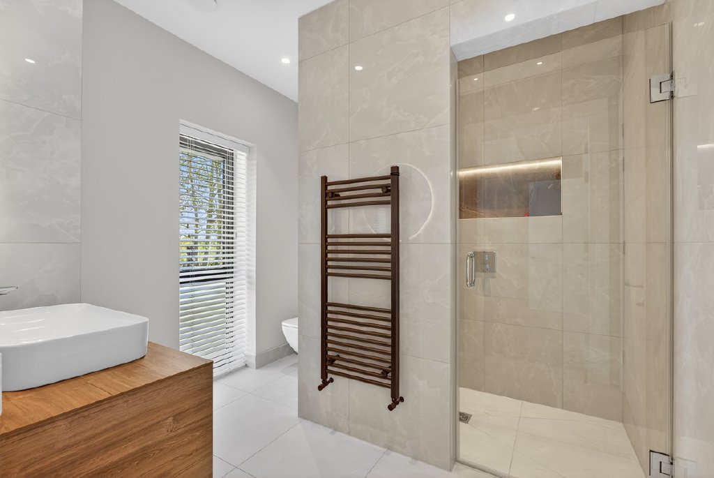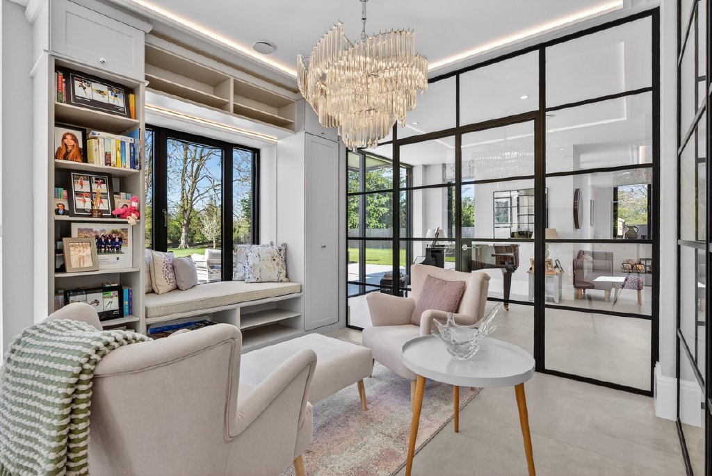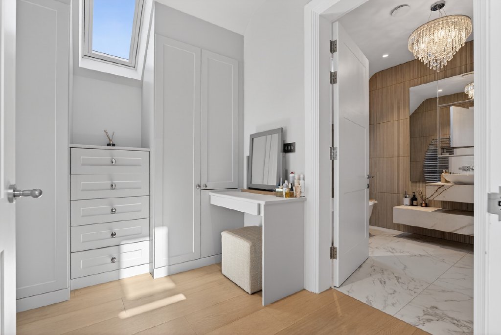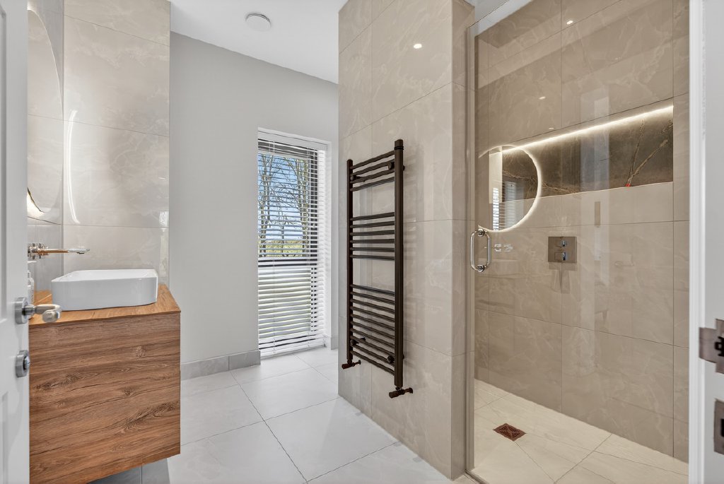 Technology and comfort are seamlessly integrated throughout, with a full Control4 system managing music, CCTV, and gate entry. A fingerprint-access front door adds a further layer of security and exclusivity, while electric blinds and underfloor heating throughout ensure year-round comfort.