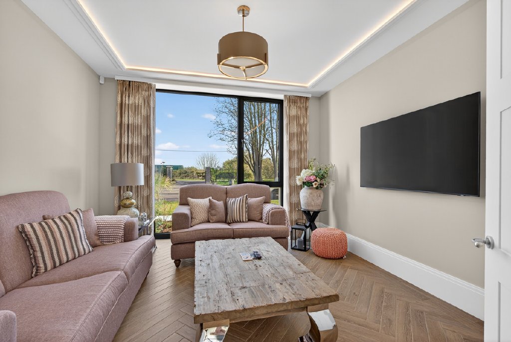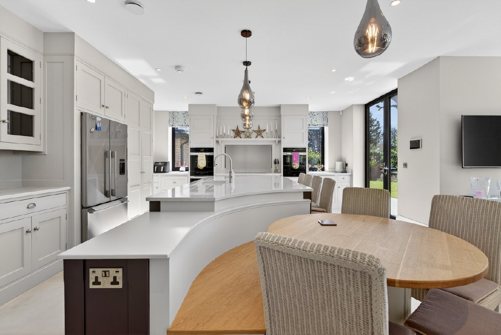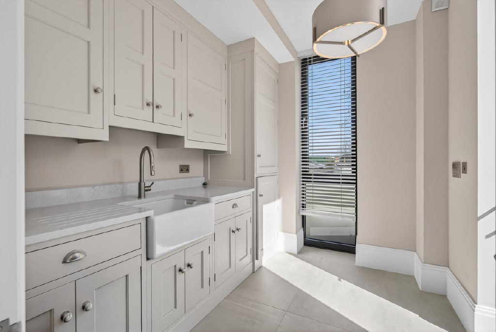 The kitchen is thoughtfully equipped with a boiling and sparkling water tap, while a dedicated plant room discreetly houses the boiler and systems—keeping utility areas streamlined and practical.