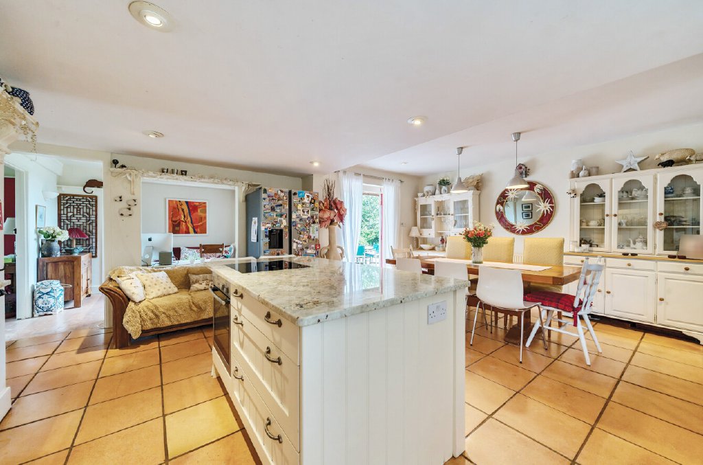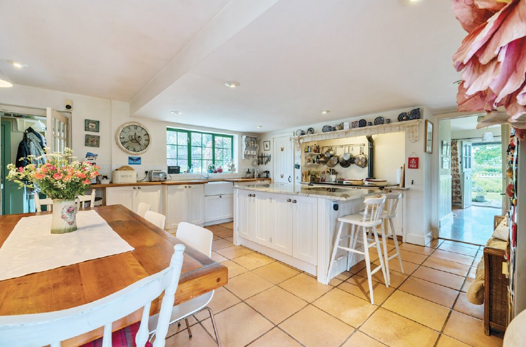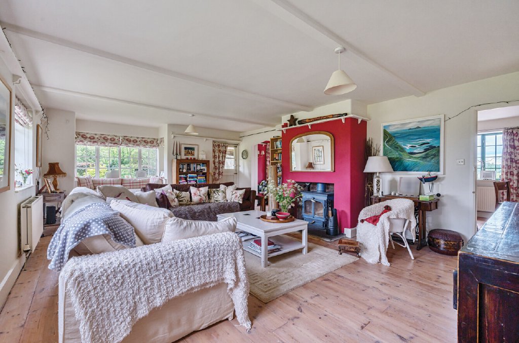 A handy boot room opens onto the rear gardens with cloakroom off. A snug that overlooks the kitchen leads to the beautiful sitting room with multiple windows overlooking gardens and countryside views. A wood burner is a welcome addition on colder days.