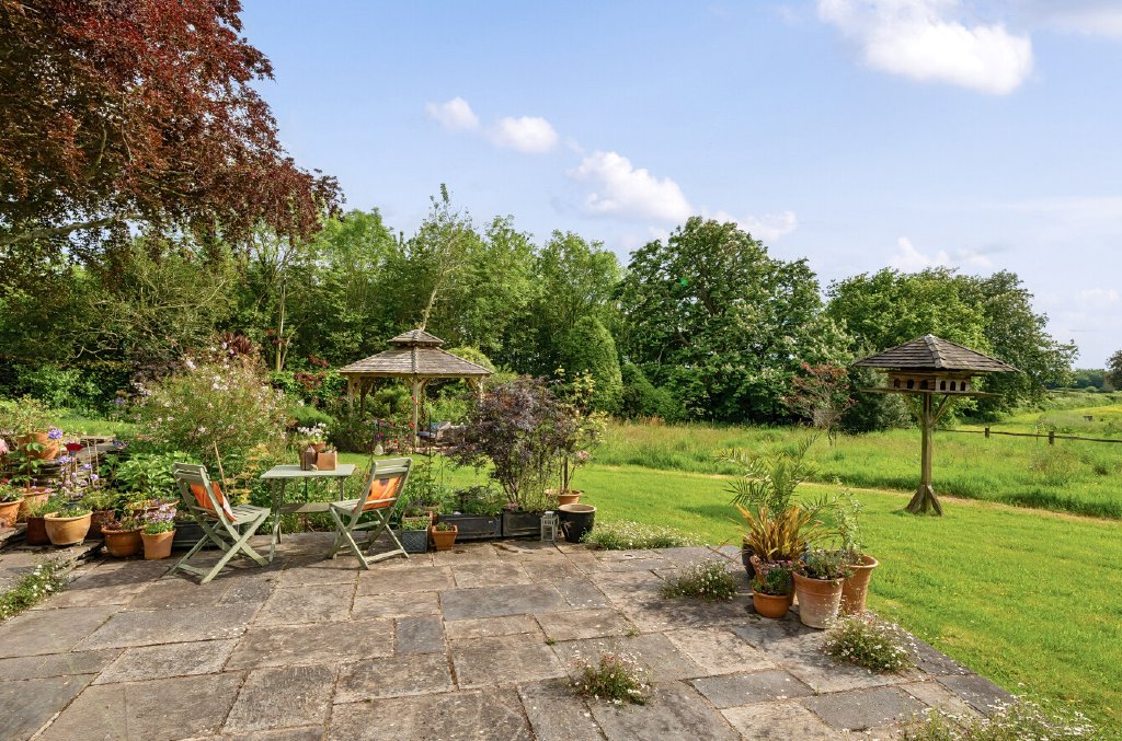 Level gardens wrap around the property, featuring an abundance of well-stocked flower borders.
