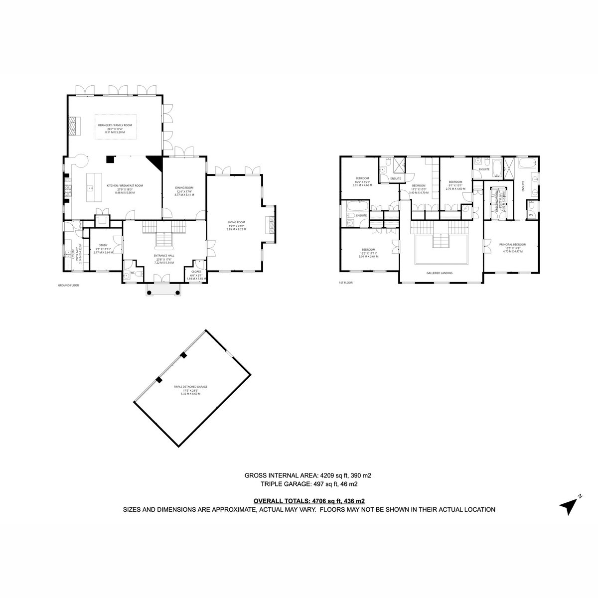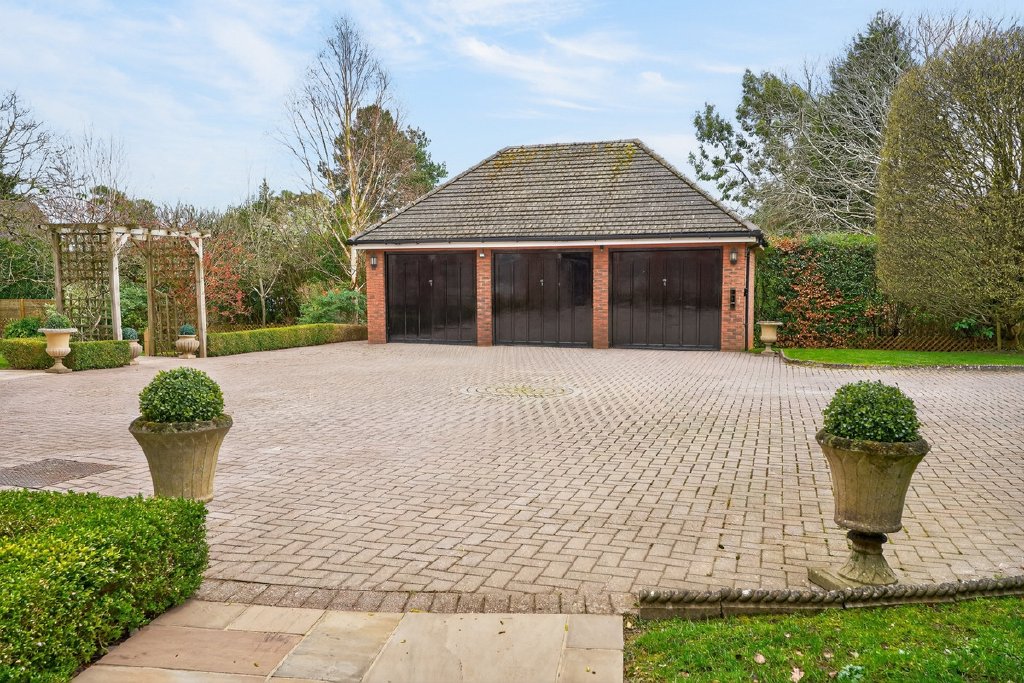 - Detached triple garage with extensive driveway parking