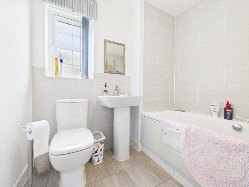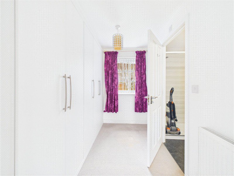 On the first floor, the landing includes an airing cupboard and leads to the family bathroom, which is fitted with a bath and shower over, WC, and wash hand basin. Bedroom three is a spacious double with a rear aspect, while bedroom four is a double room with a front aspect. The principal bedroom is a particularly generous double room with dual aspect windows and a comprehensive range of fitted wardrobes, along with an en-suite shower room comprising a large shower cubicle, WC, and wash hand basin.