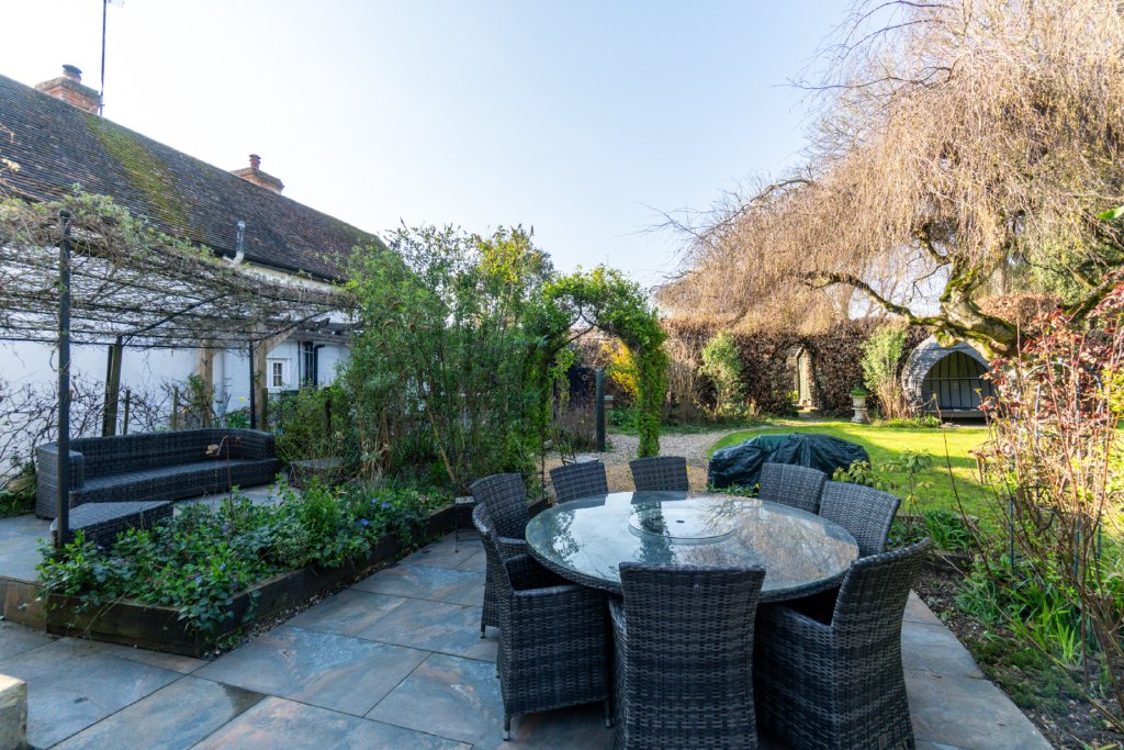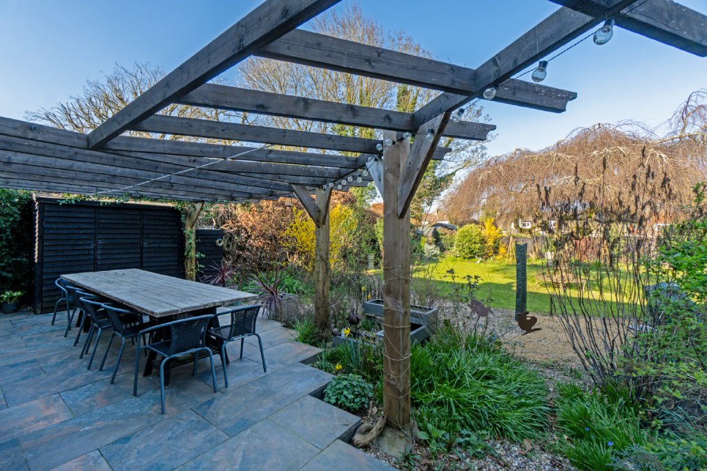 Set within a generous private plot, the property enjoys established gardens with seating areas, perfect for outdoor dining and entertaining, enclosed vegetable garden. A gravel driveway provides parking for numerous vehicles.