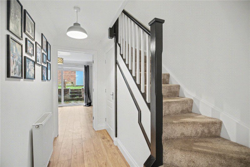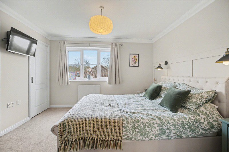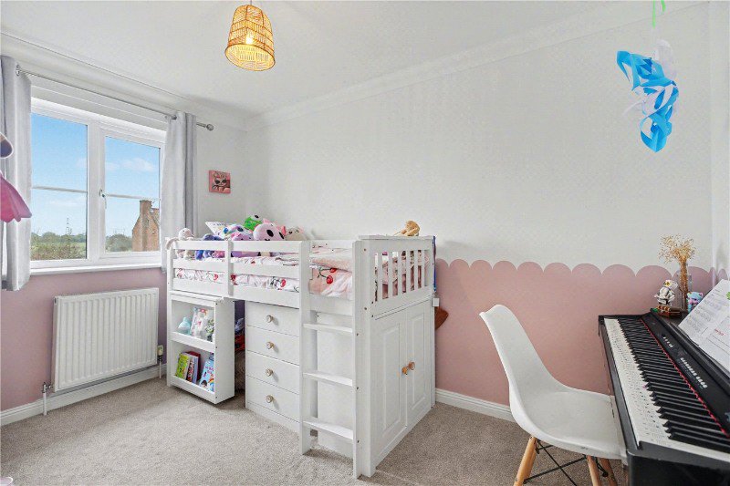 Upstairs, all three bedrooms are arranged off the landing. The principal bedroom benefits from a built-in wardrobe and en-suite shower room, while the remaining two bedrooms offer flexibility for a variety of uses, whether as additional bedrooms, a home office or nursery. These are served by a well-appointed family bathroom.