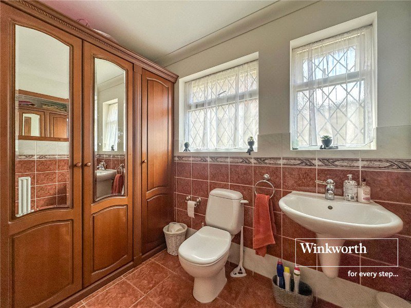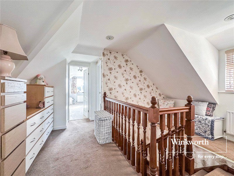 Upstairs there is an equally well-proportioned landing with three double bedrooms, the largest of which features lots of built in storage and an en-suite bedroom. The main bathroom benefits form a walk in shower, bath, wc and hand basin.