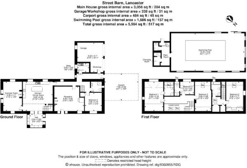 The property boasts the added luxury of an indoor swimming pool, situated in a separate outbuilding alongside the main house. This leisure area also includes a shower room, WC, and plant room.