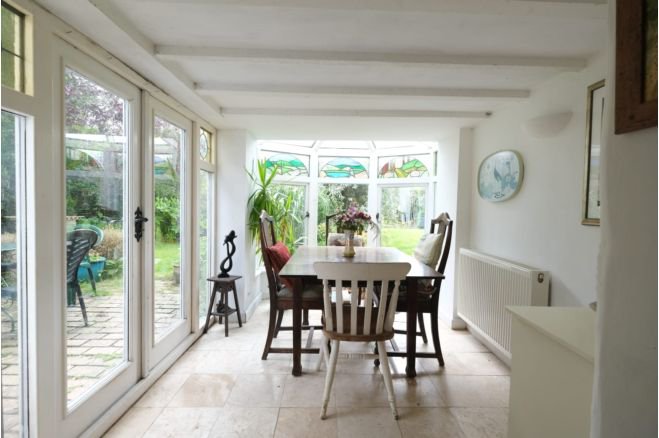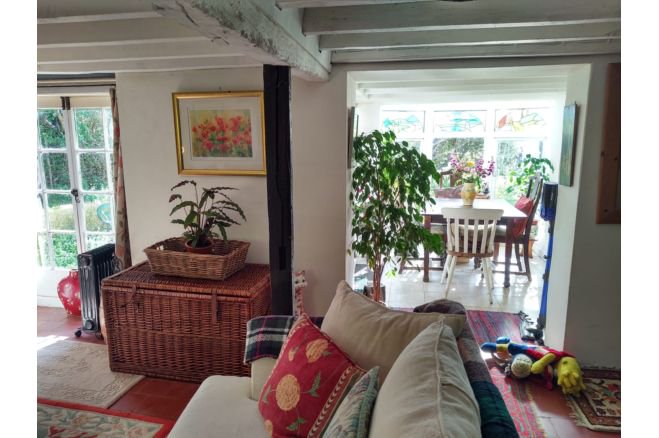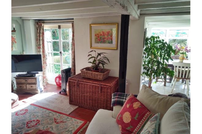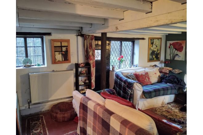 *CASH BUYERS ONLY* Situated in a semi-rural setting is this delightful character cottage with period features. And offers versatile accommodation arranged over two floors. Also included is a 1.18 Acre field with stabling for two horses. Front door to living room with Inglenook fireplace, beamed ceiling, plenty of space for sofas and chairs to relax in, dual aspect windows/ patio doors. Beamed Sun Room currently used as a dining room with space for a dining table and chairs. Double glazed double doors leading out to patio and garden. Downstairs cloak room/ utility room. Kitchen/breakfast room with base units, Inglenook fireplace, room for a dining table and chairs, large floor to ceiling larder cupboard. Lobby with stable door to outside and door to ground floor bedroom 3. This is fitted with a shower cubicle and sink and has ample loft storage space above. On the first floor there are two further bedrooms, both with dual aspect. A bathroom, with two sizeable storage cupboards, completes the internal accommodation. Outside The property is set in a large plot. There is a delightful patio, a mature wrap around garden, including a woodland area containing many interesting plants and shrubs. Greenhouse and vegetable plot. Driveway for parking. Large wood and old thatched outbuilding- a section is used as a garden shed, a section for storing logs and the rest is garage space- not currently used. 1.18 acre field with stabling for two horses.