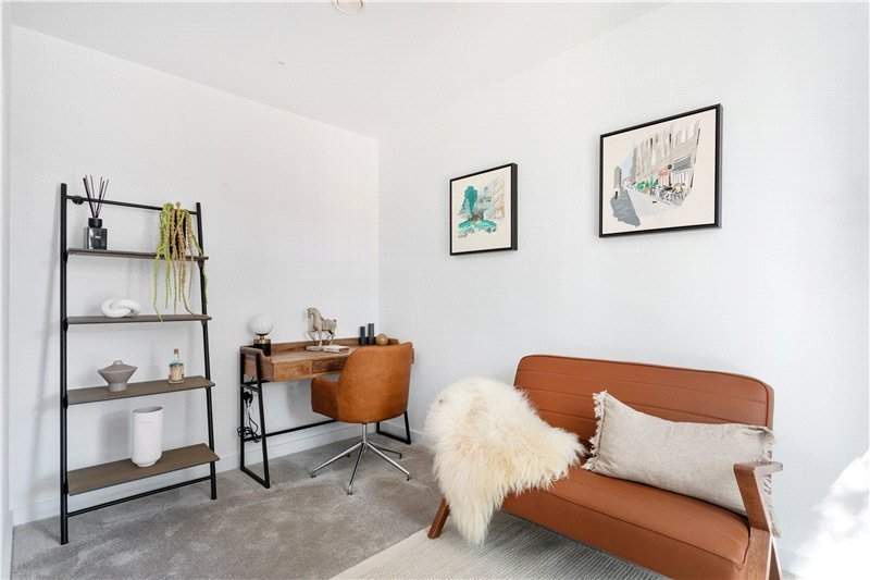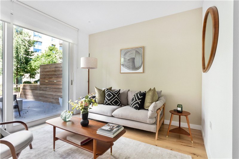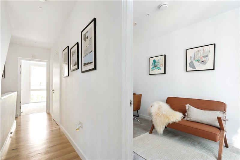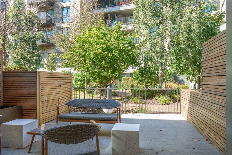Enter on the ground floor via beautiful, landscaped front gardens, the ground floor provides fantastic lateral living with modern fully integrated kitchen at the front with added space for dining. Behind sits a modern W.C. with ample contained storage opposite. At the rear, a spacious reception room with direct access out on to the sunlit terrace offering fantastic views on to the communal landscaped gardens behind.