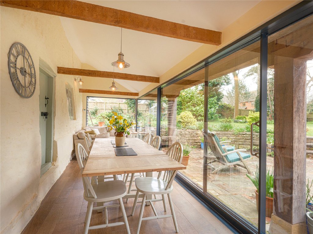 The most recent addition to Slate Farm is the striking, glass garden room with vaulted ceiling, underfloor heating and large sliding doors leading out onto the gardens.