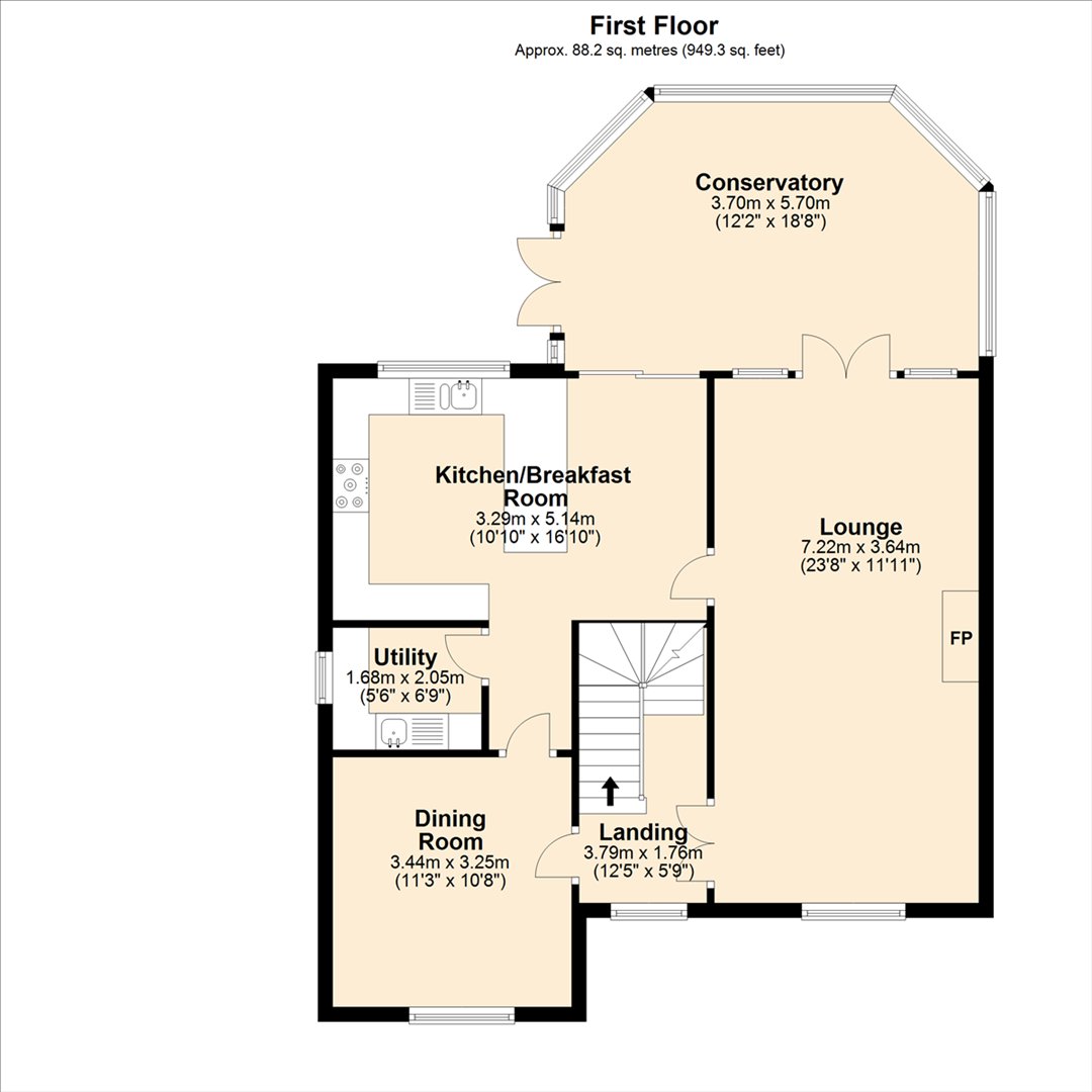 1st Floor - Landing off to Lounge, Conservatory, Dining Room, Breakfast Kitchen and separate Utility Room.