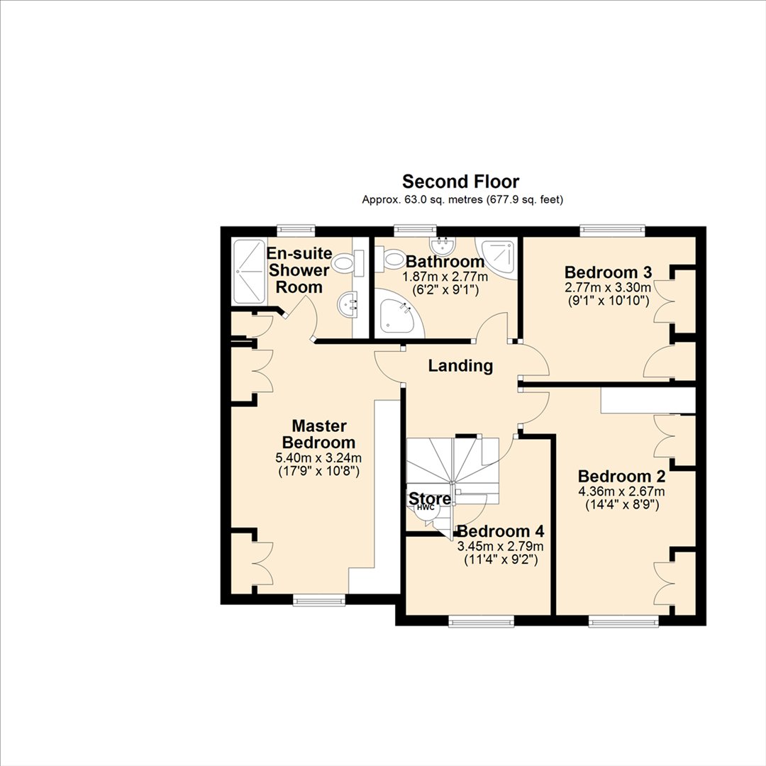 2nd Floor - Landing off to Master Bedroom with En-Suite Shower Room, Bedrooms 2 & 3, Bedroom 4 with Store and the Family Bathroom.
